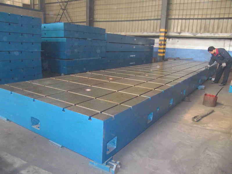 2、工裝平臺(工裝平板)材料及處理:材料為高強度鑄鐵HT200-300,工作面硬度為HB170-240,經(jīng)過兩次人工處理(人工退火600度-700度)